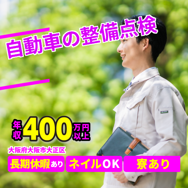 給与詳細 年収例 4,090,380円 月収例 340,865円 勤務地 大阪府大阪市大正区 仕事内容 朝礼後、自分の持ち場へ移動し作業を行います。