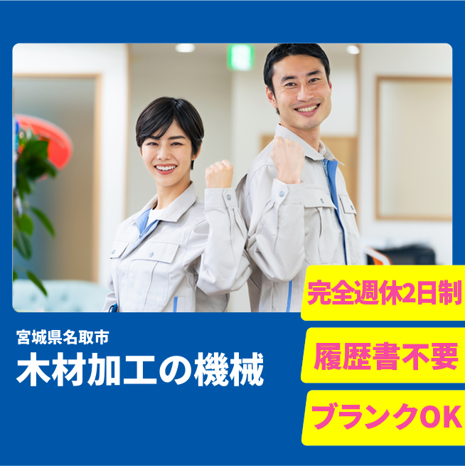 給与詳細 月収例 235,950円 時給例 1,210円 勤務地 宮城県名取市 仕事内容 加工機を使って木材の裁断、検品、加工、梱包業務