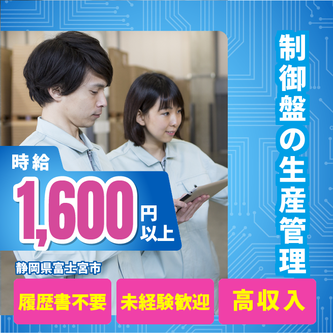 給与詳細 月収例 310,800円 時給例 1,680円 勤務地 静岡県富士宮市 仕事内容 工作機械用制御盤の生産を、計画立案から資材手配・工程進捗・品質/コスト/納期管理まで一貫して対応いただきます。