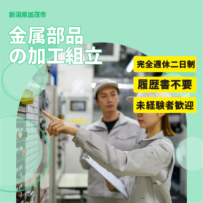 給与詳細 月収例 234,000円 時給例 1,200円 勤務地 新潟県加茂市 仕事内容 【業務内容】