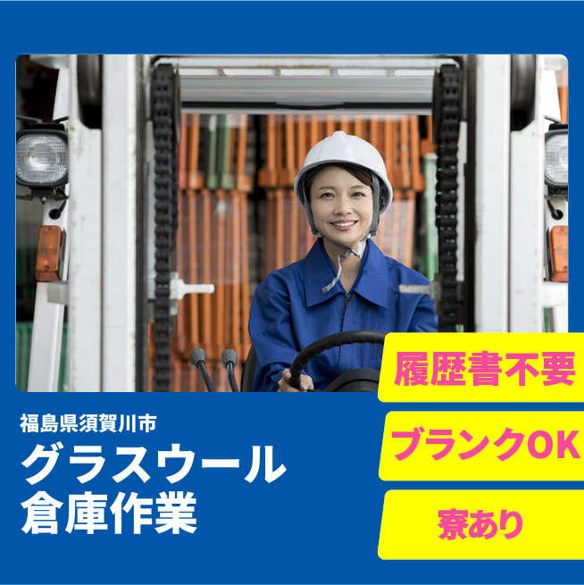 給与詳細 月収例 230,000円 日給例 11,500円 勤務地 福島県須賀川市 仕事内容 【業務内容】グラスウール製品の倉庫管理と製造サポート