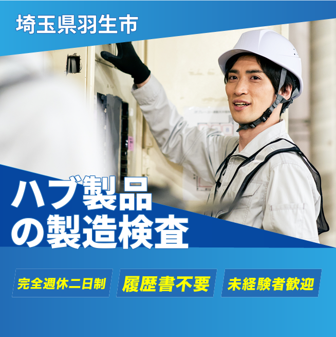 給与詳細 月収例 270,000円 時給例 1,600円 勤務地 埼玉県羽生市 仕事内容 ハブ製品の製造、研削、巡回、外観検査、梱包作業をお願いします。