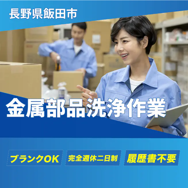 給与詳細 月収例 224,250円 時給例 1,150円 勤務地 長野県飯田市 仕事内容 【業務内容】金属部品の洗浄作業
