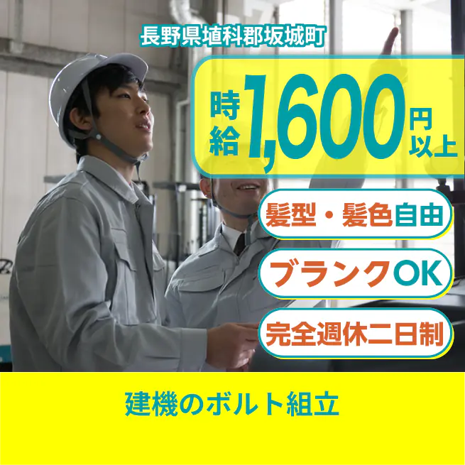 給与詳細 月収例 264,000円 時給例 1,670円 勤務地 長野県埴科郡坂城町 仕事内容 【業務内容】
