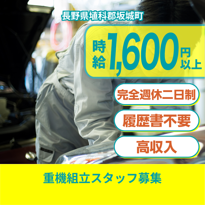 給与詳細 月収例 264,000円 時給例 1,670円 勤務地 長野県埴科郡坂城町 仕事内容 【業務内容】