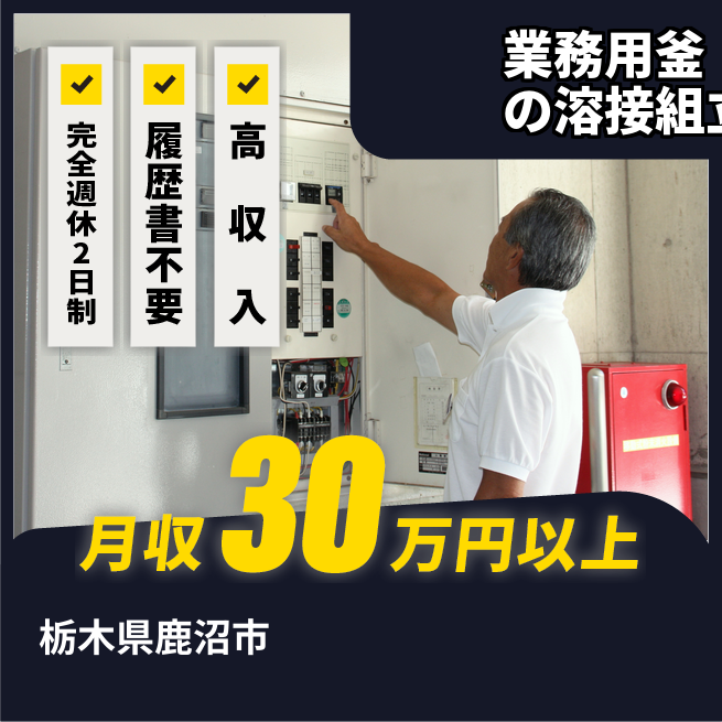 給与詳細 年収例 4,115,400円 月収例 342,950円 勤務地 栃木県鹿沼市 仕事内容 【業務内容】