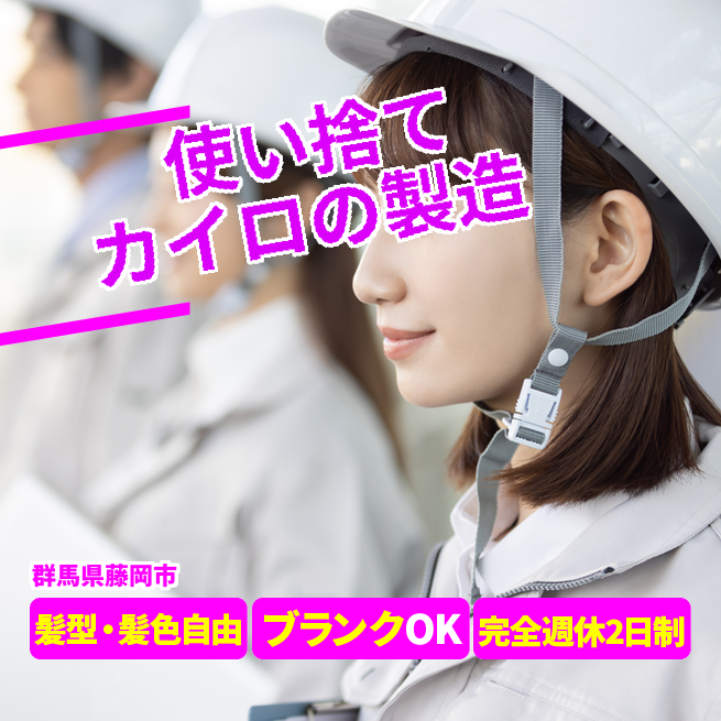 給与詳細 月収例 292,500円 日給例 12,000円 勤務地 群馬県藤岡市 仕事内容 使い捨てカイロの製造に関する業務機械オペレーター。原料の鉄粉(1袋20kg)を混合機へ投入、機械の清掃業務。