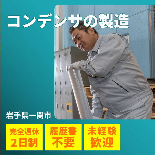 給与詳細 月収例 185,000円 時給例 1,180円 勤務地 岩手県一関市 仕事内容 コンデンサーの製造機械オペレーター業務