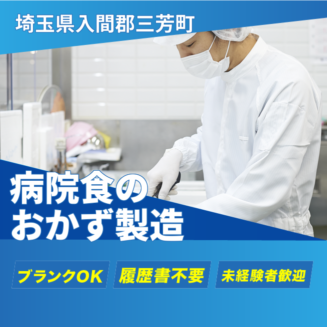 給与詳細 月収例 263,250円 日給例 10,800円 勤務地 埼玉県入間郡三芳町 仕事内容 病院食(おかず)製造