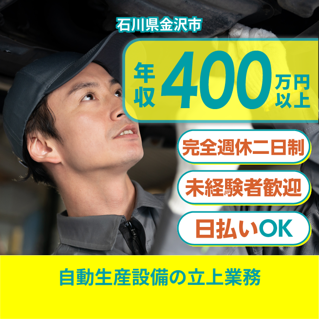 給与詳細 年収例 4,000,000円 月収例 330,000円 勤務地 石川県金沢市 仕事内容 【業務内容】