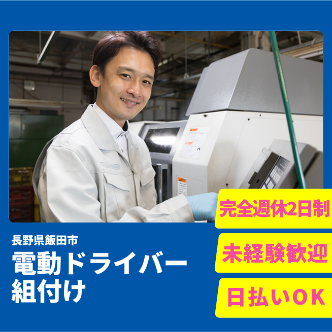 ※実際と異なるケースもございます。 交通費 支給あり 応募の流れ 本ページ内<応募する>ボタンより、必要項目をご入力の上、ご応募ください。 勤務地 【勤務地】長野県飯田市松尾 勤務時間 【勤務地】①08:30~17:15 休憩45分