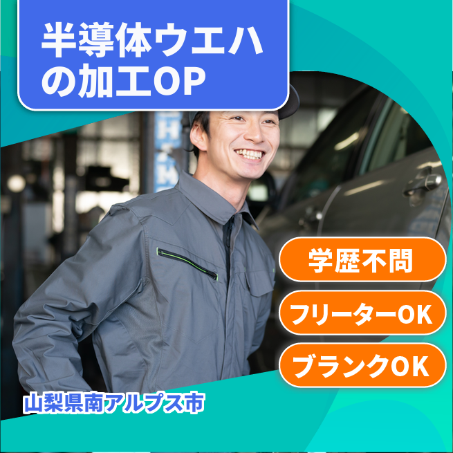 給与詳細 月収例 224,000円 日給例 11,200円 勤務地 山梨県南アルプス市 仕事内容 パワー半導体ウェハ(8インチ)を各装置にセットし、処理後に取り出して、製品を次工程に流動。製品品質を測定機で判定します。