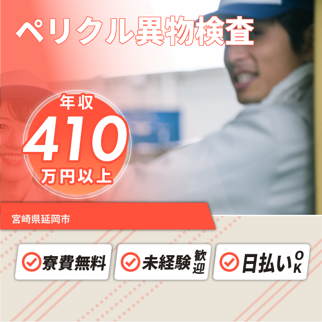 給与詳細 月収例 330,230円 時給例 1,687円 勤務地 宮崎県延岡市 仕事内容 【業務内容】