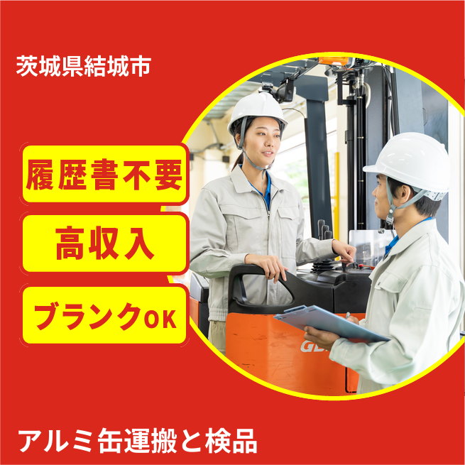フォークリフトを用いてアルミ缶を運搬し、検品を行う業務です。