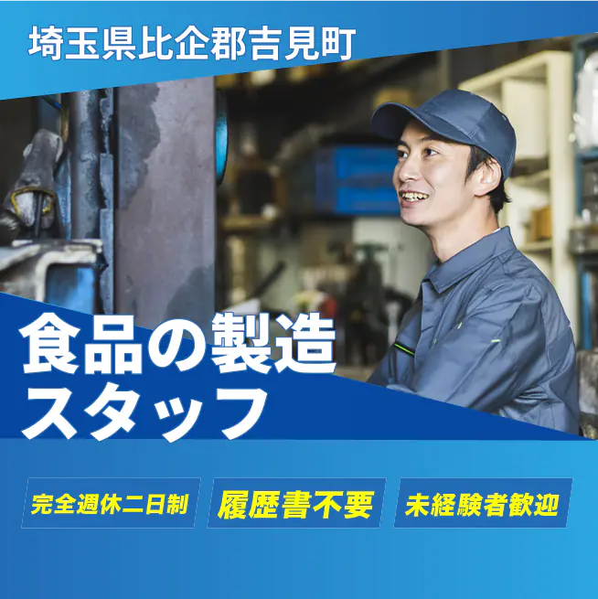 給与詳細 月収例 205,000円 日給例 10,250円 勤務地 埼玉県比企郡吉見町 仕事内容 【業務内容】