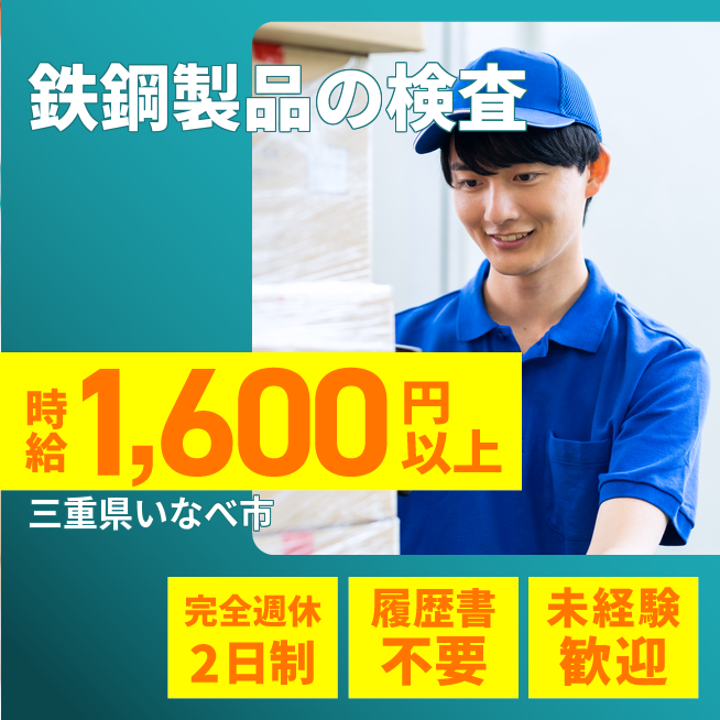 大手鉄鋼メーカーにて製造品の検査のお仕事です。