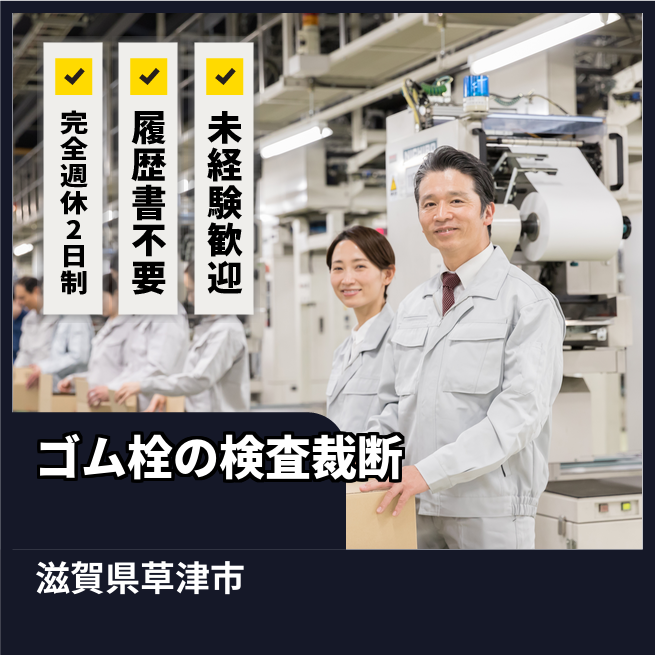 就業場所:全国(派遣先)/就業範囲:派遣先業務全般(詳細は就業条件明示書で明示する) ・注射器に使用するゴム栓の検査