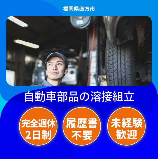 給与詳細 月収例 230,000円 日給例 11,500円 勤務地 福岡県直方市 仕事内容 自動車部品の組立、ロボット溶接業務