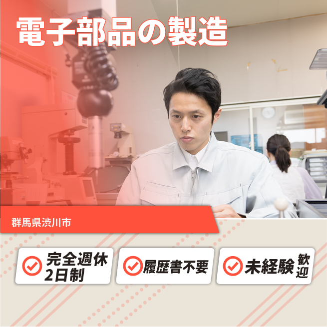 給与詳細 月収例 234,000円 時給例 1,200円 勤務地 群馬県渋川市 仕事内容 【業務内容】