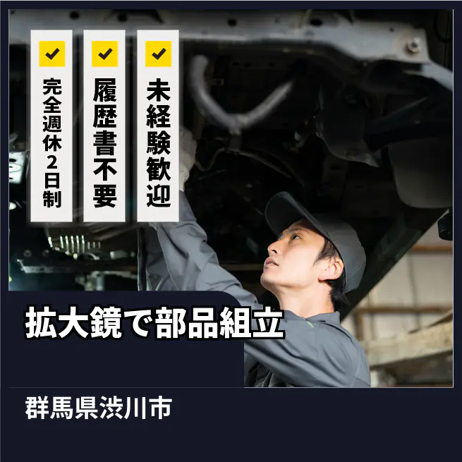 給与詳細 月収例 234,000円 時給例 1,200円 勤務地 群馬県渋川市 仕事内容 【業務内容】