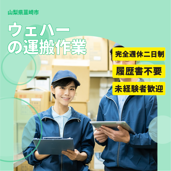 給与詳細 月収例 195,000円 時給例 1,300円 勤務地 山梨県韮崎市 仕事内容 【業務内容】