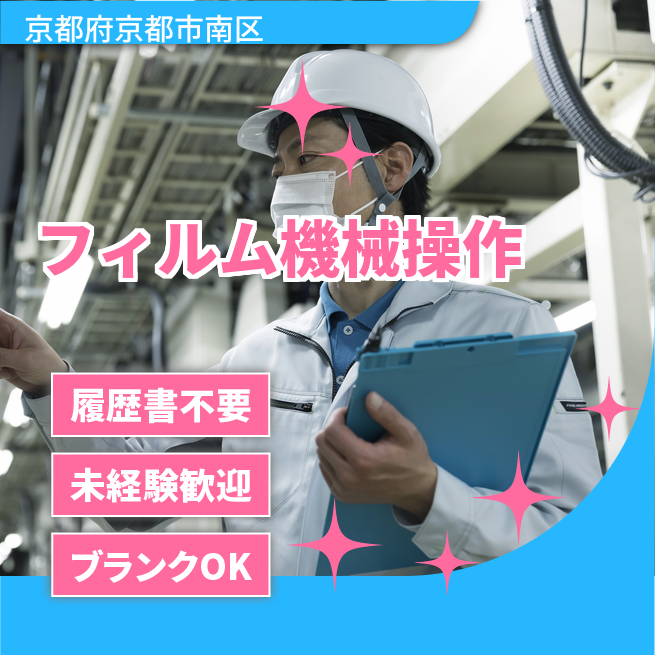 給与詳細 月収例 273,000円 日給例 11,200円 勤務地 京都府京都市南区 仕事内容 【業務内容】工業用フィルム製造工場での機械オペレーター