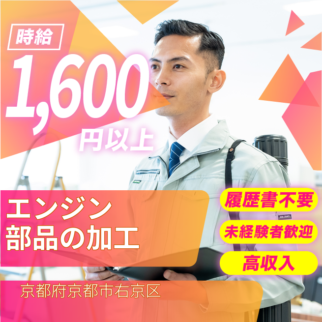 給与詳細 年収例 4,032,000円 月収例 336,000円 勤務地 京都府京都市右京区 仕事内容 自動車用エンジン部品の加工業務。