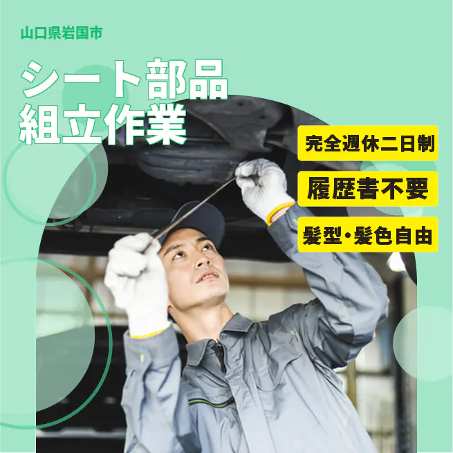 - 自動車シート部品の組立作業を行う