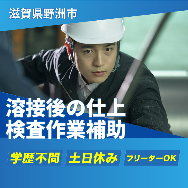 給与詳細 月収例 232,000円 日給例 11,600円 勤務地 滋賀県野洲市 仕事内容 溶接後の仕上げ作業や、金属製バー(棒)の検査業務。
