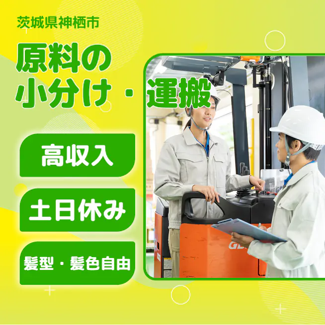給与詳細 月収例 238,495円 日給例 11,600円 勤務地 茨城県神栖市 仕事内容 ①原料の小分け