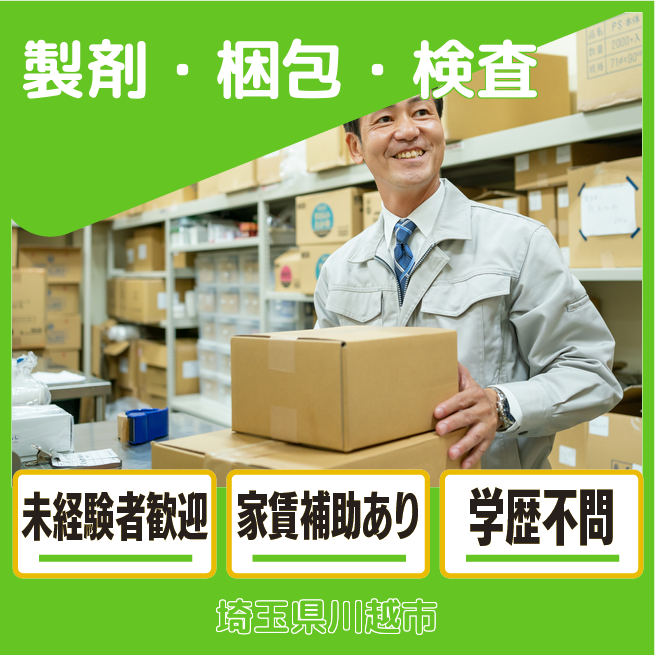 給与詳細 月収例 213,112円 日給例 10,000円 勤務地 埼玉県川越市 仕事内容 製剤・梱包:主に機械操作。