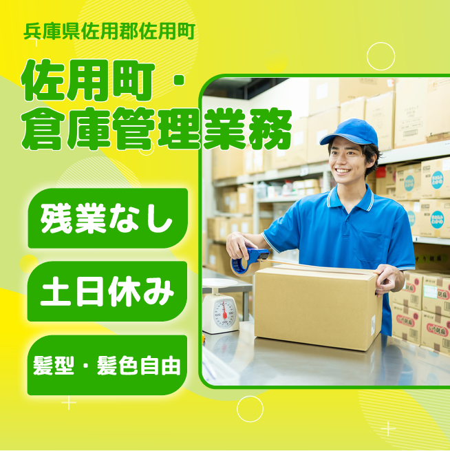 佐用町での日勤による倉庫内作業で、在庫管理や入出荷業務、運搬などを担当します。
