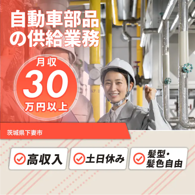給与詳細 月収例 284,217円 日給例 11,200円 勤務地 茨城県下妻市 仕事内容 【業務内容】