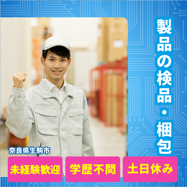 給与詳細 月収例 225,980円 時給例 1,238円 勤務地 奈良県生駒市 仕事内容 【目視検査・梱包作業】