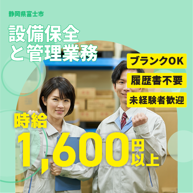 給与詳細 月収例 327,600円 時給例 1,680円 勤務地 静岡県富士市 仕事内容 【業務内容】工場設備の管理と保全計画の策定