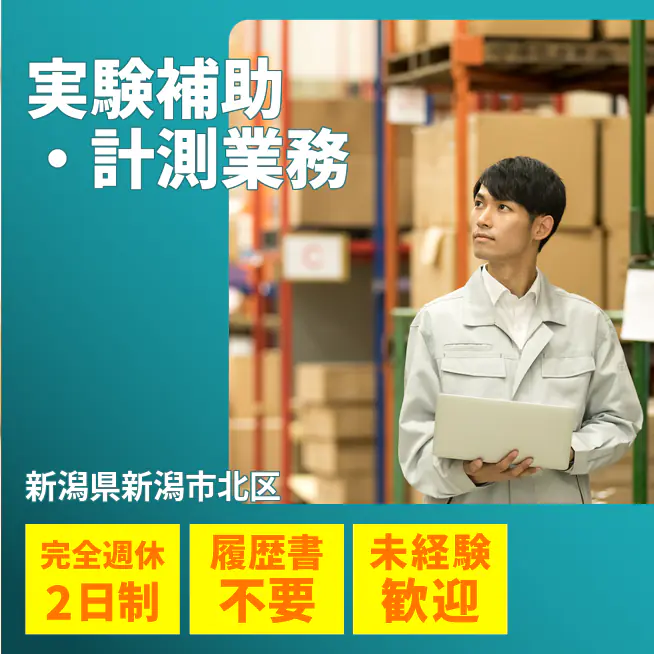 給与詳細 月収例 253,500円 日給例 10,400円 勤務地 新潟県新潟市北区 仕事内容 【業務内容】電子部品材料の研究・開発に関する実験補助業務