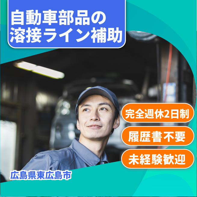 給与詳細 月収例 269,000円 日給例 13,450円 勤務地 広島県東広島市 仕事内容 自動車金属部品を機械にセットし、機械が溶接をします。出来上がったらカゴに入れる。