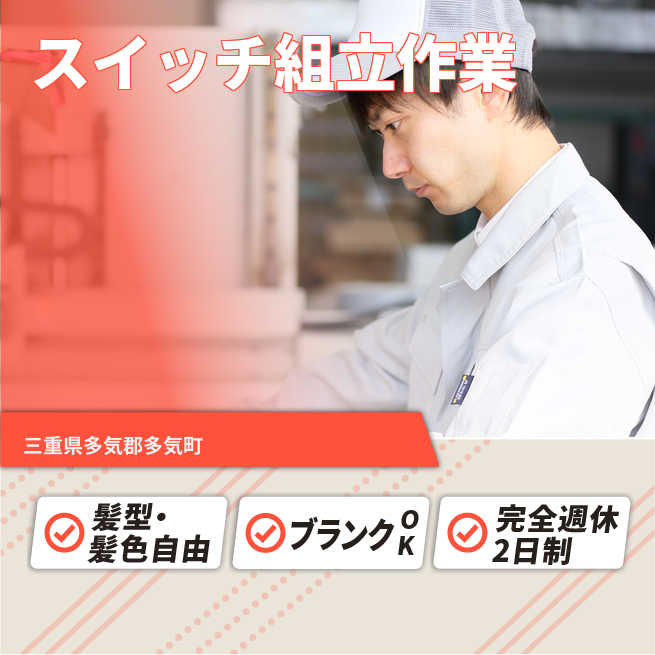 - 車載用スイッチ(エンジンスターター)の組立から検査までの一連の作業