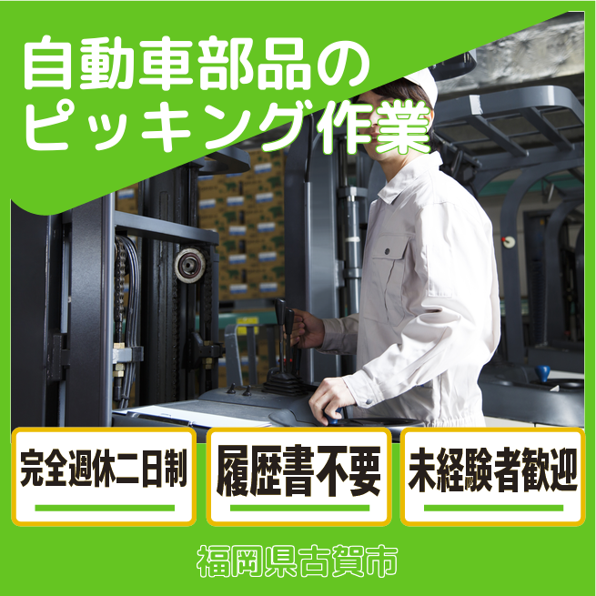 給与詳細 月収例 180,000円 時給例 1,250円 勤務地 福岡県古賀市 仕事内容 フォーク:物流倉庫内にて自動車部品のピッキング作業、検査工程への製品投入、検査後の製品の搬出