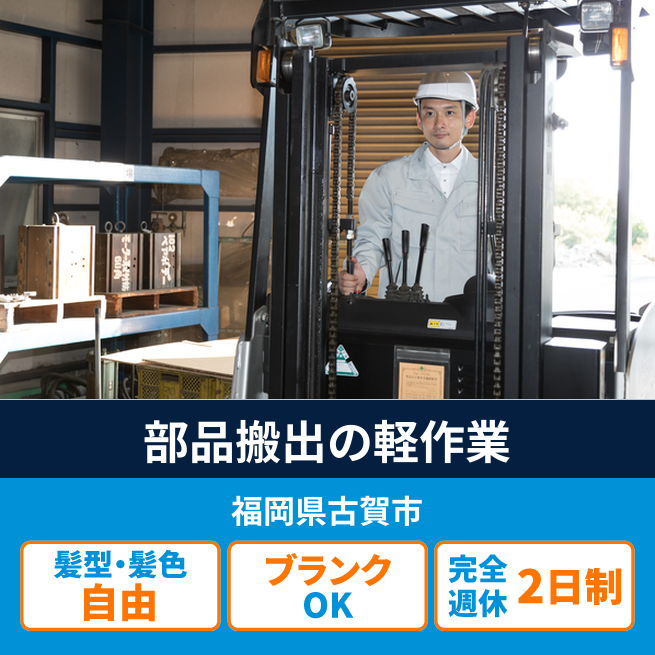 給与詳細 月収例 180,000円 時給例 1,250円 勤務地 福岡県古賀市 仕事内容 【業務内容】物流倉庫での自動車部品の管理と検査サポート