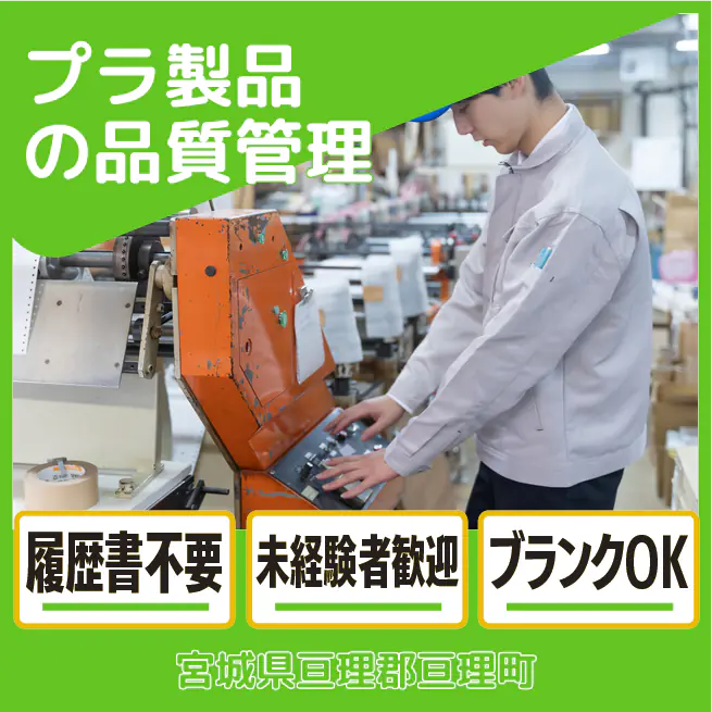 給与詳細 月収例 190,000円 時給例 1,300円 勤務地 宮城県亘理郡亘理町 仕事内容 【業務内容】プラスチック製品の品質検査と仕上げ作業