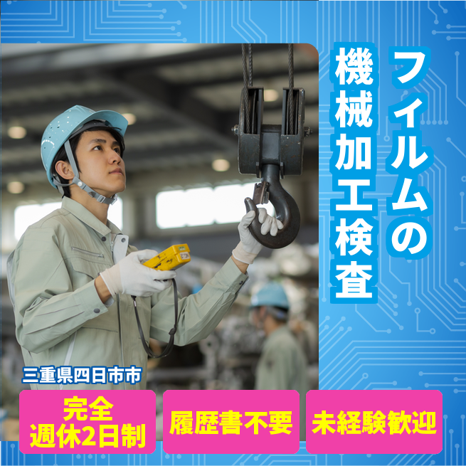 就業場所:全国(派遣先)/就業範囲:派遣先業務全般(詳細は就業条件明示書で明示する) フィルムの加工をメインでしてもらいます。加工は機械にセットしていただいて、機械が加工し終わったら取り出してもらいます。それを検査したりすることもあります。