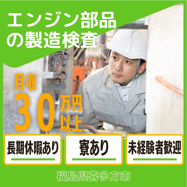 給与詳細 月収例 308,513円 日給例 12,000円 勤務地 福島県喜多方市 仕事内容 【自動車部品の加工】