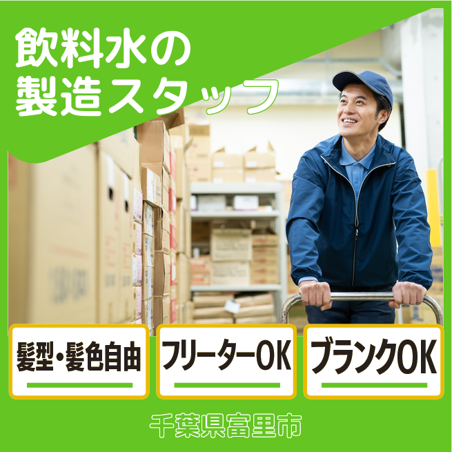 給与詳細 月収例 283,400円 日給例 10,400円 勤務地 千葉県富里市 仕事内容 【飲料水の製造スタッフ】