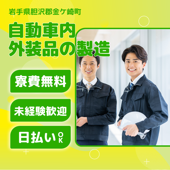 給与詳細 月収例 255,850円 日給例 11,200円 勤務地 岩手県胆沢郡金ケ崎町 仕事内容 【自動車用シートの製造スタッフ】