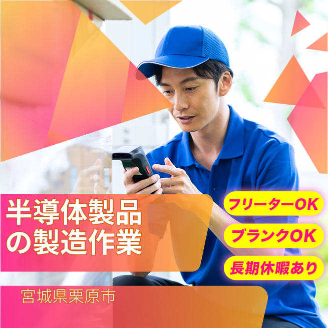 給与詳細 月収例 225,600円 時給例 1,200円 勤務地 宮城県栗原市 仕事内容 【半導体製品の製造作業】