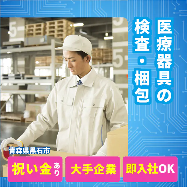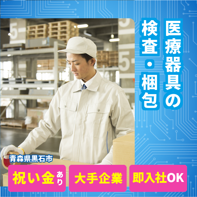 給与詳細 月収例 207,000円 時給例 1,200円 勤務地 青森県黒石市 仕事内容 【医療器具の検査・梱包スタッフ】