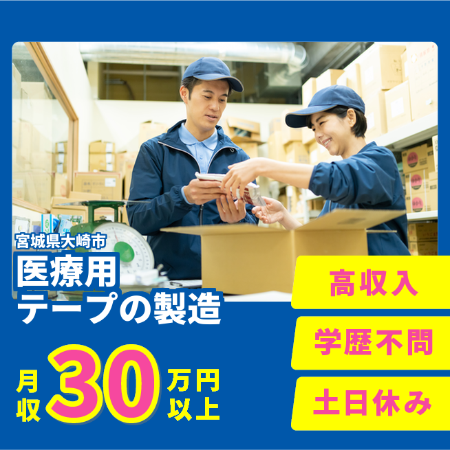 医療用テープ(絆創膏・テーピング等)の製造オペ・検査・梱包(クリーン・空調)。