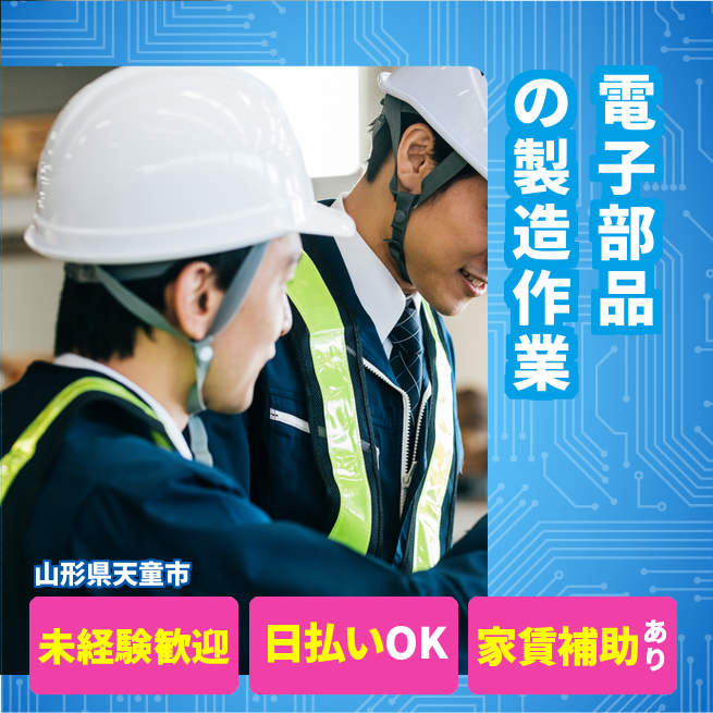 給与詳細 月収例 268,713円 日給例 10,000円 勤務地 山形県天童市 仕事内容 【電子部品の製造作業】