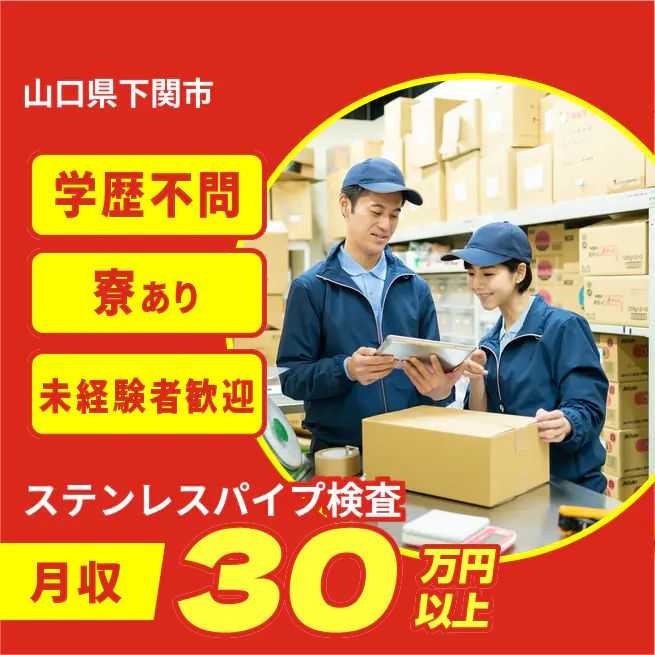 給与詳細 月収例 301,780円 日給例 11,600円 勤務地 山口県下関市 仕事内容 【ステンレス製品の製造ライン検査スタッフ】